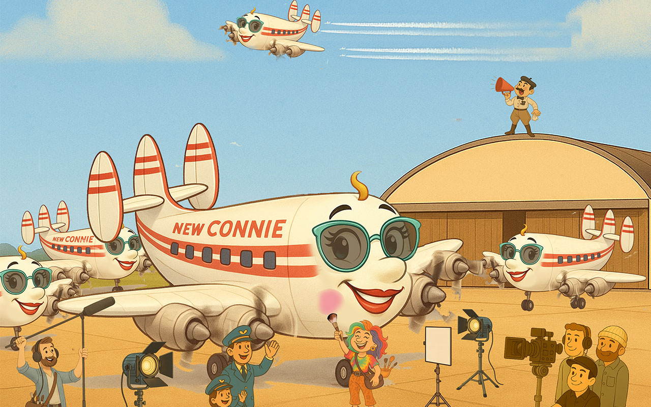 Connie’s Tale is a richly illustrated 26-page children’s book inspired by the true story of a legendary 1950s Lockheed Super-G Constellation airliner. More than just a machine, Connie had a personality all her own—and her story called out to be told. This heartfelt narrative follows Connie through the heights of her glory days, the heartbreak of abandonment, and the hope of being rediscovered and restored.